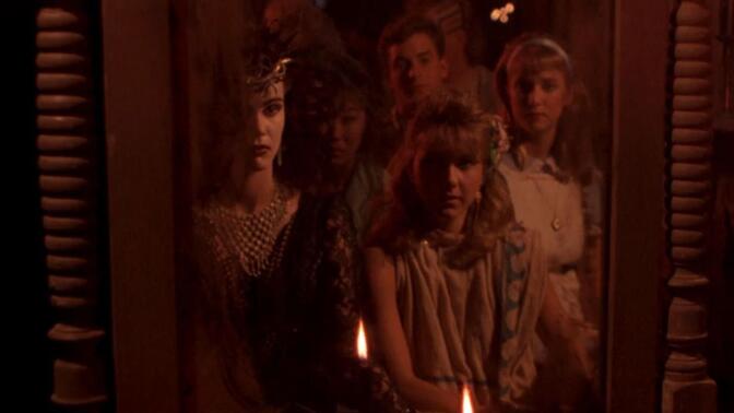 一伙儿青少年于万圣夜组团来到废弃的殡仪馆举办派对,然后邪灵“巴拉巴拉”将他们逐个杀掉的经典公式情节 … 视觉风格还是纯粹的80年代特有的味儿;片头设计气氛很足;化妆效果啥的属于那会儿同类型中的常规水平;这类电影通常必有以下元素:尖叫、裸体、血液、暴力、朋克乐和中低智商的角色 … 但我爱这样的电影;将口红塞进“胸器”的特效做的不错;回过头来发现,【Angela】所戴的十宇架耳环,在被恶魔附身后是颠倒的!