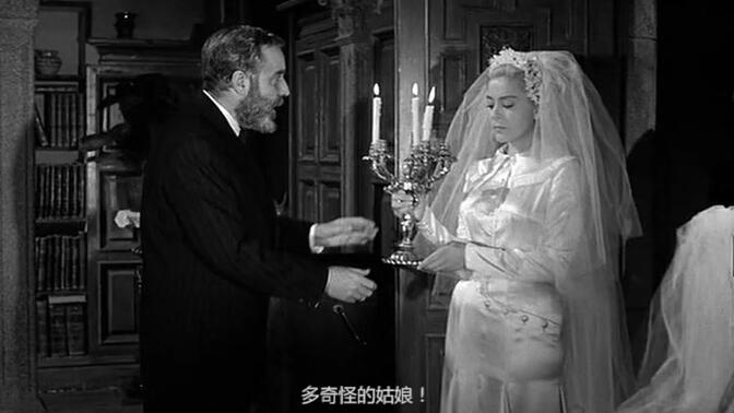 兩次被「玷污」未遂的聖女,放棄的信仰。跳繩的隱喻,最後的晚餐,所有的貓在夜晚都是灰色的,只有最虔誠的信徒才能看到宗教的虛偽。Silvia Pinal穿上白色婚紗簡直就是天使! |