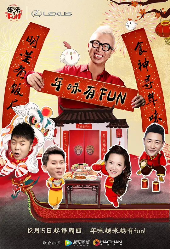 简介:看片狂人(www.kpkuang.com)为您奉上中国大陆综艺作品《年味有FUN》的免费在线观看,《年味有FUN》是由导演:胡悦执导,由欧阳应霁,李晨,杜海涛,罗晋等领衔主演,对白语言为国语,属于纪录片,真人秀,家庭类型,最后祝您观影愉快,本页面也会及时添加或更新本片(剧)的最新播放源。以下是剧情简介:《年味有Fun》是腾讯视频生活频道与华谊浩瀚联合出品的腾讯视频首部贺岁美食节目,香港食神欧阳应霁前往全国各地,与李晨、杜海涛、罗晋、张继科、杨旭文、撒贝宁、张天爱等十位当红明星一起,寻找各地的年味。节目中欧阳应霁通过一道道熟悉的年菜,追溯过年初心,寻回春节原味。面向都市年轻人,打造都市新年菜、新习俗,烹饪有品质的创意年菜。