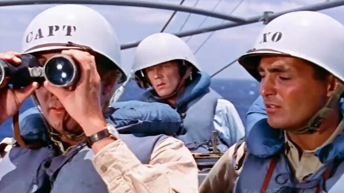 颇具浪漫主义的潜艇与驱逐舰的追斗,美国海军舰长这边有点全图插眼了,全程压着潜艇浮不上来(当然驱逐舰本身也是有优势的),整体自然还是反战之人团结起来,大美利坚引领世界,至少在1957年这个时间点,这种宣传还是不会令人反感的。 |