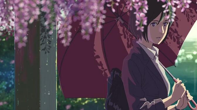 题目其实是个民俗学的引子。所谓「言葉」,既是「鳴る神の 少し響(とよ)みて」,也是雨声,总结起来大抵类似于各国神话中常见的神/精灵之声。至于「庭」,在神话中也多有人界与异界交界之地的意味。新海诚只要对这两点在形式上给予足够支撑,忘忧和返世两重主题自然而然会形成,而他确实也做到了。 |