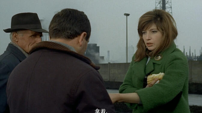 安东尼奥尼的世界观是中产阶级的。他对荒芜的理解是一种城市妇人对于城市的理解,对于废墟、生活的枯燥、机器、未来派式的城市噪音,都景观化为一种都市美学,但是在低阶层、在真实生活于其中的人那里,它是无法迅速被转化为审美事物的。《红色沙漠》中的妇人更像是她所面对的巨轮、工厂景观的闯入者,她不是一个工人、水手、职员。她没有工作。她的歇斯底里式的体验,是一种典型的阁楼上的疯女人的症候,知道自己的生活是不健全的,知道自己的枯燥,除了丈夫、孩子就没有别的牵挂,她体验到世界的‘冷’,但是又没有超脱的办法,没有出走的出路。