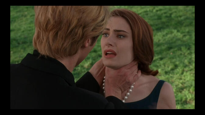 男人畏惧自己的《梦中情人》变成最熟悉的陌生人,而女人害怕自己的位置被另一个《梦中情人》所取代。除了老生常谈的「存在主义危机」之外,这部试图揭露美国司法体系漏洞的心理悬疑惊悚片还剩下什么?似乎也没了。从梦的角度来看,九十年代的美国是「中产阶级神话」集中幻灭的阶段,一方面由于「末日审判」的临近,一方面活在童话世界中的公主王子也渐渐意识到,纵然有稳定而完美的婚姻关系做城堡,可这些光鲜的俊男靓女还是会被强烈的不确定性与不安全感所主导和笼罩。爱情的变质、容颜的衰老以及虚假的伪装都必然会引起新式中产的恐慌,甚至会将人推向「自我认知障碍」的困局当中,所以中产阶级的幸福更多是来自他人的一种良好「暗示」或者积极反馈——希望自己的焦虑能被可靠信息源证实为「虚惊一场」的心理。毕竟,悬浮和失控的状态令操纵者们不爽。 |