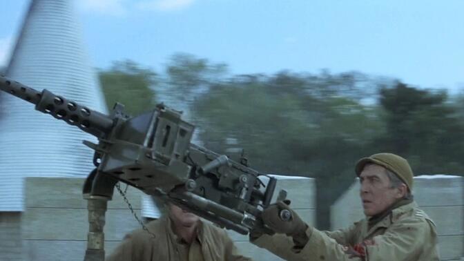 二战期间,落难的美军八人小队驻防于中世纪的欧洲古堡之中,并为保卫古堡中的珍贵艺术品与来犯的德军进行英勇战斗。主线颇有看头,而八人小队无论是从人种上的多样性还是性格上的区分度也都符合好莱坞要求,如果翻拍一版说不定也能变成类似《盟军夺宝队》的群星动作片。但波拉克对故事的处理要更为深刻:不育的古怪公爵鼓励上校与妻子偷情,希望能为家族留下子嗣,似乎是在暗指美国为二战后的欧洲输血使其历史延续;当过面包师的中士脱离部队,与面包店遗孀搭伙过活,则温和地表达着反战主题;这其中上校却强烈反对放弃城堡,认为「向德国人让一小步就意味着失去一切」,又是对战争必要性的某种捍卫。然而最大的问题出在以用机枪击落德军侦察机为分界点的前后两段脱节感严重,前半段是沉静忧郁的城堡避难记,后半段又突变成紧张激烈的大阵仗战争片了。 |