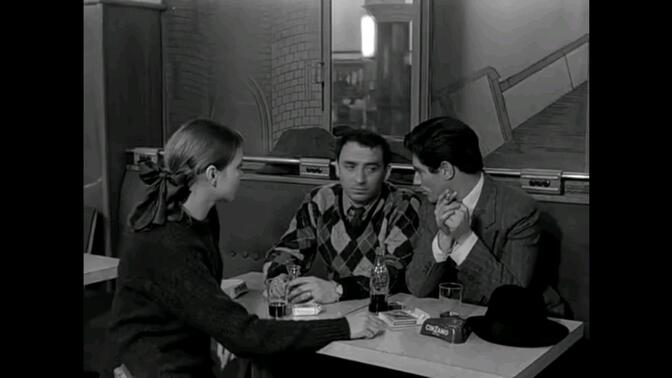 通过人物运动构造灵动的空间关系、对文学几乎可以说是信手拈来的引用、即兴性质极强的爵士乐和舞蹈、对声音的特殊处理,戈达尔的鬼点子可真多!另外,餐厅一段用到了《瑟堡的雨伞》主题曲,暗暗契合女主角内心在爱情的抉择中犹豫不决的心理,可谓最直接的新浪潮致敬/互文。 |