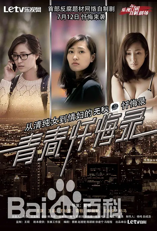 首部网络反腐题材自制剧《青春忏悔录》,改编自作家杨燕群的热门小说《中国情人》,展现了从清纯女到情妇的秘密忏悔录。女主人公莫黙从一名清纯女大学生接连沦落为教授、富商、企业家、高官的玩物的故事,青梅竹马的爱情终究败给了残酷的生存现实……