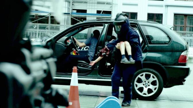 银行经理卡洛斯在早晨告别妻子玛尔塔,开车送女儿莎拉、儿子马可斯去上学,途中接到匿名电话称车上有炸弹且任何人下车即引爆,并索要67547现金和42万转账。同事维克多被炸死路上,马可斯的腿被炸伤。联系玛尔塔却联系不上,只好让秘书协助挪用客户的42万,方法就是欺骗客户说有利率5%的投资产品让其投资。女儿莎拉说出妻子与安格尔出轨的事。联系上妻子后歹徒让玛尔塔把6万现金带到广场。 安格尔报警后卡洛斯被警车围困广场,卡洛斯说出炸弹事警方始疏散。警官贝伦查出后座没炸弹就让马可斯下车,莎拉怕警方误杀父亲就死活不下车跑到前座。警方叫来卡洛斯的哥哥卢卡斯始知道凶手就是他,其仇恨卡洛斯与维克多骗取积蓄投资失败。在码头莎拉下车卢卡斯上车,开车冲入海中爆炸,卡洛斯获救后与总行的亚历杭德罗的诈骗投资也被曝光 |