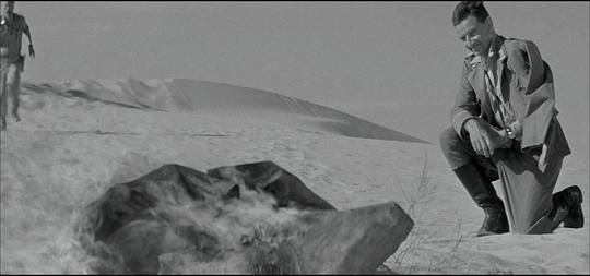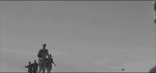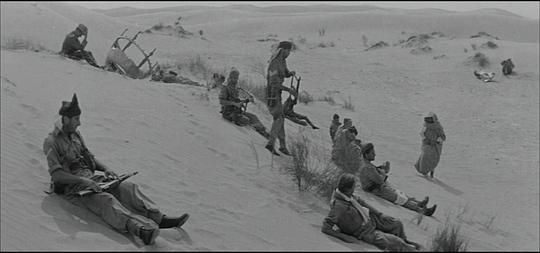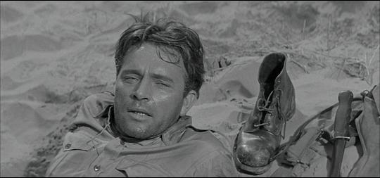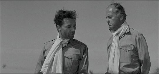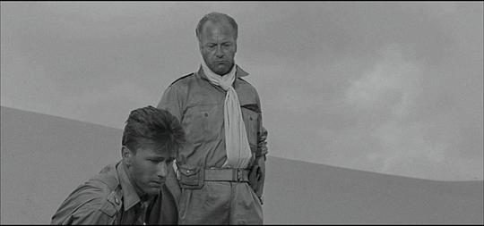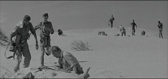 7.8/10。二战,西部沙漠战役,双线交织:同盟国男军官A和B与A的妻子(她曾在与A结婚前与B有过暧昧)间的三角情爱故事;A与B共同去执行艰苦的前线军事任务以及A担心B告发他在执行任务时的懦弱行为(后来B死去时他见死不救)。表意有力的摄影是高水平,但作为传统故事片叙事很淡/拖(虽然这也增强了写实感和压抑感),扣1分。 |