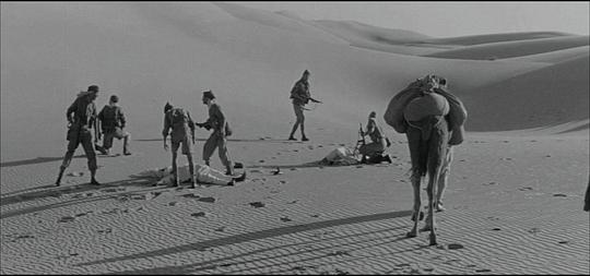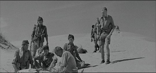 这部片子的重点可不是描写盟军与德军发生在阿拉伯大沙漠的战争,其实影片只用了不算长的时间,展示了盟军突击队袭击德军总部夺取机密文件以及伏击德军巡逻队两场战斗戏。以后相当长的时间里,除了展示突击队徒步穿越沙漠所面临的恶劣的生存环境外,片子的重点放在描述少校布拉德对上尉利斯的谋害上。利斯是布拉德夫人的老相好,不巧的是,行动前布拉德夫人探望丈夫,与利斯不期而遇,两人旧情复燃,而这一切都被布拉德看得一清二楚。布拉德因妒生恨,也因利斯看穿他懦弱的一面,故穿越沙漠途中,利用职权设计或见死不救致利斯于死地。两人的恶劣关系,彼此间心知肚明,两位男主角也演出来了。唉,不是战争,而是漂亮多情的女人的到来,夺去了帅气、英武的老情人的生命,令人唏嘘不已。配乐也加重了片子的阴郁气氛。真是一部另类的战争片啊。7.4分。 |