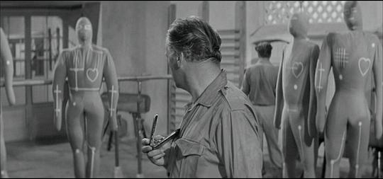 戈达尔在本片的影评中写道电影就是尼古拉斯雷,但他把爱森斯坦比作舞蹈的这一类更能给人启示(因为爱森斯坦在变化中寻找不变)。雷是把一种类型片当作场景(像是布列松所做的,只在剧本改编时采纳情景,而完全不挪用原著的哲思),并且在这一类型片中去探索角色在生死面前所做的反思和抉择,这样不免让人想起梅尔维尔对“战争片”这一类型里做出自己的改革和创新。和手册派类似的是,雷会用一些看起来近乎儿戏的关系作引子,但只让其起到功能性的作用,而不对其进行反思;但戈达尔等人却可以把“儿戏”上升到哲学的层次,且不被“儿戏”所拘束。雷这种近乎空洞的、躁郁的风格确实会让风评两极分化,但他被好莱坞叙事体系拉扯,导致其中专属于美国文化的幼稚深入了他的影片。例如最后一镜中,把勋章贴在假人的心上,好像在宣布:“快看,隐喻/象征!” |
