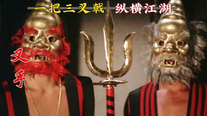 【哪吒斗夜叉】《叉手》的特点在于其悬疑叙事结构,影片从一开始就设置了"谁是叉手"的核心谜题,通过层层递进的线索引导观众参与推理,叉手组织的三位首领都隐藏在看似普通的江湖人物之中。动作设计上,《叉手》体现了张彻团队在武打编排上的创新尝试。郭追、江生等人担任武术指导,将杂技元素融入传统武术,创造了"五叉飞舞"等视觉效果突出的打斗场景。特别是最终决战中,新二叉头突然表演的一段"打把势卖艺",以及同伴被不明绿色液体喷死的桥段,确实有点雷人。 |