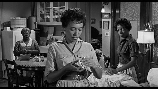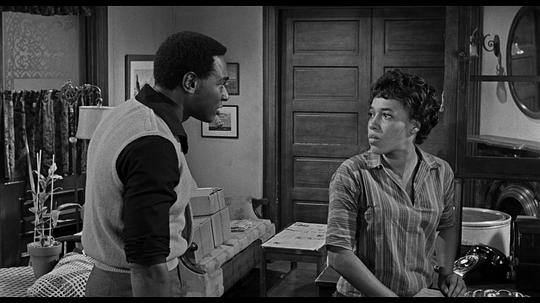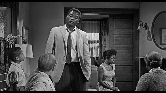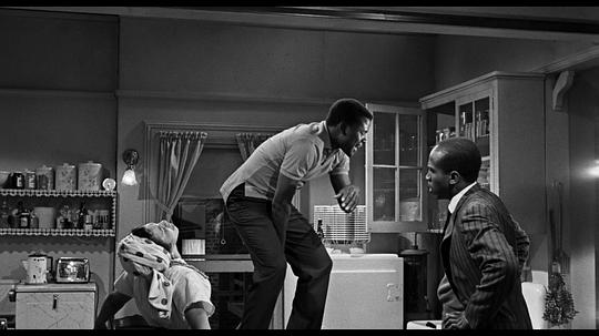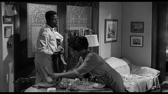 室内空间的展现十分成功,运用房门、拉门、栏杆巧妙转场,似转非转。各个角色的人生恰如他们的活动区域一样不可避免地纠缠到一起,家庭的命运背负在每个人身上。Beneatha讽刺说老二只能睡到房顶上,心理上的重担顿时有了空间意义,像是一块磐石压在头顶。随着剧情推进,本来看起来朴实但整洁有序的公寓变得窒息、伸展不了手脚。既然一家人这么喜欢慷慨陈词、手舞足蹈,换房子恐怕是必然。不知道在新房子里,有了相对独立的空间,Lena反复强调的家族意识会不会减弱,睡在自己房间里和睡在沙发上的Travis肯定有着不同的未来走向。 |