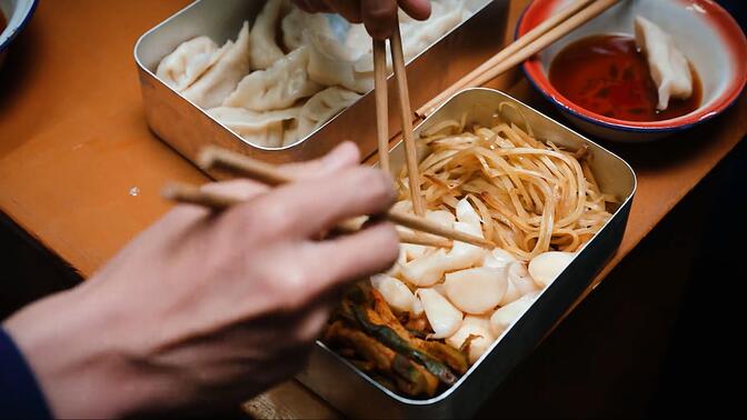 做餃子和咀嚼餃子拍的很好,很細緻。 |