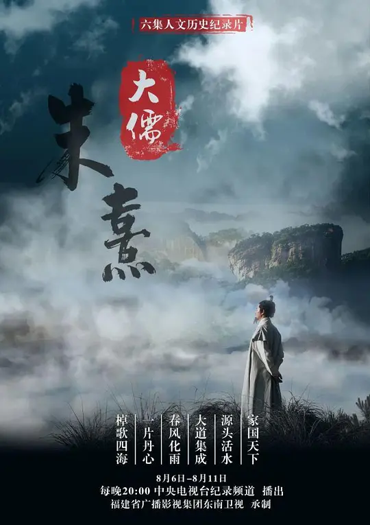 “纪录片《大儒朱熹》每集50分钟,分别为《家国天下》、《源头活水》、《大道集成》、《春风化雨》、《一片丹心》、《棹歌四海》,在再现朱熹人生轨迹的同时,也关注朱熹思想对今天中国人在思维方式、伦理教育等方面的影响,见证朱子学的长久生命力和持续影响力。摄制组历时两年半,拍摄足迹遍及大江南北,并远赴日韩、东南亚、欧洲等地,探寻以朱子学为代表的中华文明在世界广泛的传播力和影响力。” |