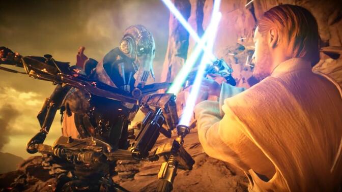 视效不错。前传里的Jedi Knights不再神圣倒显得面目可憎,尤达不如后传,奥比旺不如年老,新出现的温度简直恶心,就魁刚金有点后传早期气质,还出来一集就挂了 |