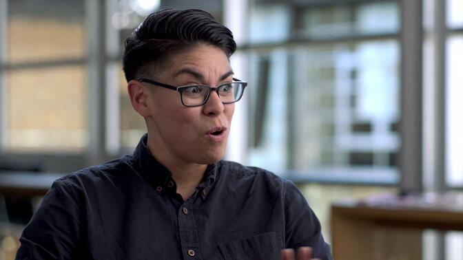 第四集统计性别平衡、添加按性别追踪台词功能完善剧本创作工具这事很酷——“表征很重要,人们能够从银幕上看到自己或是ta认为能代表ta们的东西很重要。” 第六集关于全球各地区的本地化工作很酷——(画面:冰棒从左到右指着标识上的每个字)“最有意思的是希伯来语和阿拉伯语,它们甚至阅读方向都是反的,必须换个方向。” |