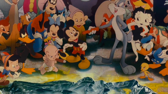完全可以说是卡通版的《头号玩家》,华纳与迪士尼的众多卡通角色登场联动,可惜少了米高梅的《猫和老鼠》,有些遗憾啊!比迈克尔乔丹与兔八哥的《空中大灌篮》更早,表现也更夸张,用卡通的方式打败卡通,也是独具匠心的设计,“卡通的存在就是让人发笑”,这句台词真是说的直白又真诚 |