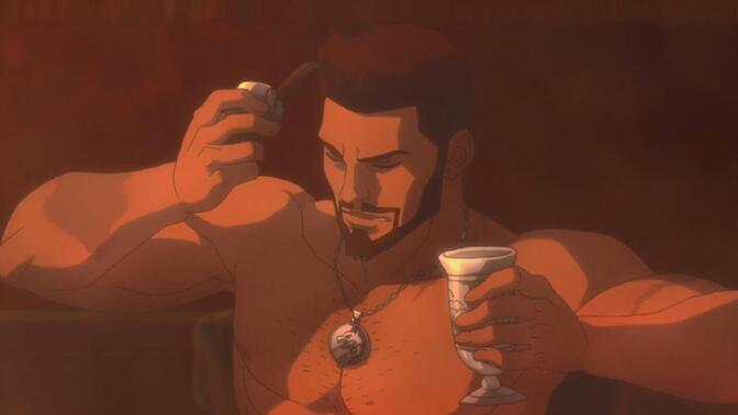 打戏精彩,音乐很有游戏内味,开篇吟唱瞬间想起《血与酒》宣传cg。剧情就很一般了,初恋情人塑造得不错,“所以把我欠主人的债变成欠爱人的债吗”。还有那段月下告白,“拜托,我都快70岁了。”“我也是。”So romantic! |