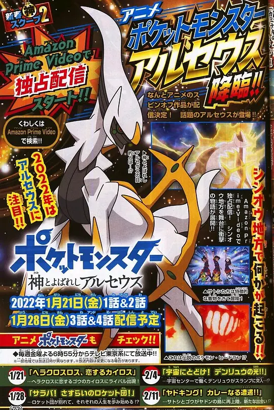 简介:看片狂人(www.kpkuang.com)为您奉上日本动漫作品《宝可梦:被称为神的宝可梦 阿尔宙斯》的免费在线观看,《宝可梦:被称为神的宝可梦 阿尔宙斯》是对白语言为日语,属于动画,冒险类型,目前在豆瓣的评分为7.2分,有65名网友参与打分,最后祝您观影愉快,本页面也会及时添加或更新本片(剧)的最新播放源。以下是剧情简介: 这部以新奥地区为舞台的特别篇,除了小智和小豪之外,以小光为首的令人怀念的伙伴们出场,策划着神秘计划的银河队、被称为神的宝可梦·阿尔宙斯也即将登场。