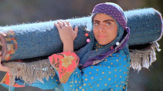 8.0/10。①一对老夫妻在洗一张漂亮的地毯,突然地毯上出现一个女生A,她是这地毯的灵魂。她讲起了她自己的故事,一段与一骑手B深情相爱却被父母阻拦最终选择私奔并成功的故事。影片最后的叙事方式似乎暗示这对老夫妻就是私奔后的A和B。②魔幻/梦幻的诗意的营造:鲜艳明亮的高水平摄影美术;大量相似性转场/蒙太奇(比如老师台上讲颜色那段),让各个相隔遥远的时空的动作仿佛在互动/仿佛是同一个,制造了一种魔幻的质感;舒适的音响。③作为传统故事片叙事太平淡,扣1分。 |