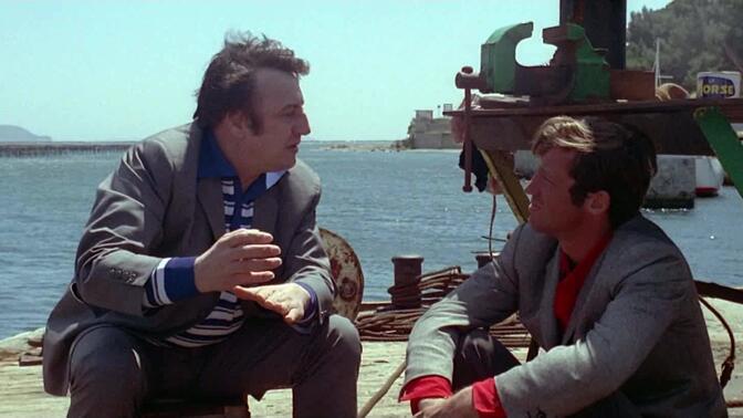 8/10。戈达尔嘲讽地运用象征平等和博爱的法国国旗颜色,皮埃罗参加岳父家的无聊派对,他每走过一对情侣画面色调就随之变为红、蓝,笼罩着中产阶级的无聊,驾车逃跑一段皮埃罗和玛丽安娜的脸分别打着蓝、红的灯光,后面两人分别靠着射杀夺来的蓝色和红色的汽车兜圈打转,也对两人性格进行了对比(爱的小丑和生活的疯子),玛丽莲娜坐在船上那长镜头后面飘着的法国国旗加强了无政府主义的暗示。音画错位和镜头感称得上挥洒自如,两人逃上岛向美国游客表演越战,玛丽莲娜把脸涂黄、戴越南斗笠,皮埃罗扮演趾高气昂的美国水手,把燃烧的木材丢进大海表现击落飞机,画外音炸弹轰鸣,创造了非同凡响的效果;荒野中火烧车祸现场、两人手拉手趟过河流、加油站与工人对打,长镜头大全景、跟摇戏仿喜剧和动作片,皮埃罗坐船跟着玛丽莲娜的不对称构图表现妒杀之心。 |