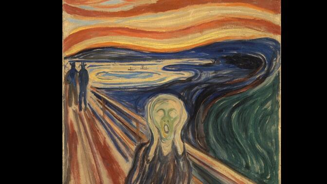 一个又一个黄昏日落时,蒙克画布上的滴血般的鲜红与波浪形的线条让人心力交瘁。 |