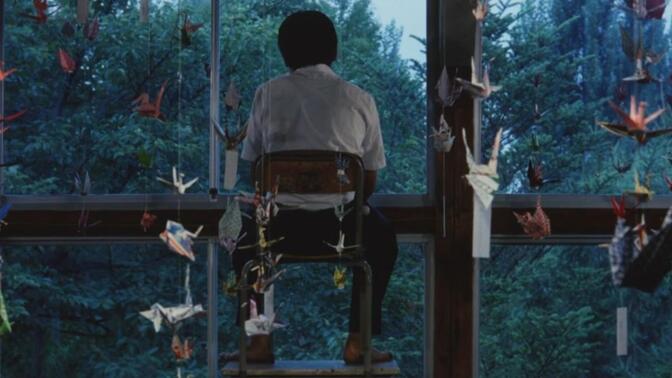 因为长镜头不只是赋予了身体完整运动的力量,还和室内(实际的室内-与学校建筑的合谋,以及形式的室内-大雨形成的雨墙)形成了一套内外封闭的箱庭结构,从而如鬼魂般悄然摄取着青年们的精气,当被榨干抹净之时,青年们也就成为了数学老师那般的无为常人。