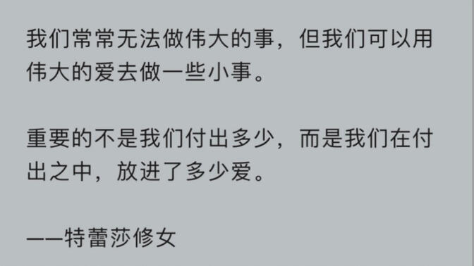 我们所做的一切只是大海中的一滴,但如果我们不这么做,这滴水将永远的失去。 |