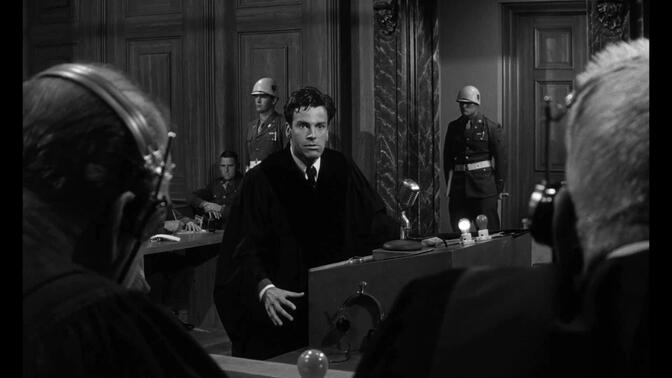 “这是我们时代的困境”,技术上倒不显眼,除了几次突然的推拉摇移,镜头整体偏稳,打光始终透亮,灰度适宜,画面基本是为呈现言语而存在。它选择了纽伦堡审判中针对德国法官的部分,在极特殊的背景上,将法理放置在国家主体和国际利益上进行讨论,电影里的美国主审法官最终选择不顾美德两国的国家立场,不过他终身监禁的判决在冷战诉求上注定无法实现,在庭审戏之外,还安排了主审法官与德国军官遗孀的交往、美国军方和政府对军界检方的指引两条线索,第一条线稍显生硬,主要是提出谁该为战争和灭族行为担责的问题,第二条记录了政治对于法律的约束,整个剧情能感到美国对德国的怀柔,结合剧中对冷战的叙述,我觉得存在对冷战政策的批判性立场(并且形成了有趣的自反)。演员们的表现精彩,尤其德国小律师,反应快情绪足,是这部庭审戏中的口才担当。 |