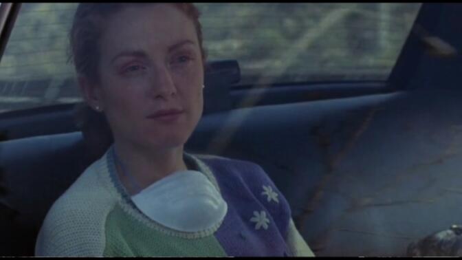 Carol的病发意味着日常一致性的中断,幽灵形态的anxiety令共性失灵,在影片的前半部分,《安然无恙》展现了中产日常的侵略性,巨型卡车背后散发的尾气是日常的B面,城市空间的刑具,也暗示着某种持续进行的“吸入-排出”机械运动。
