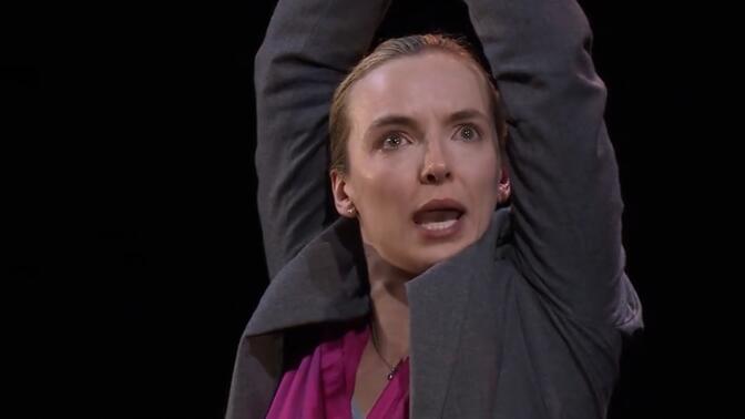 NTLive 最打动我的是Jodie在表演结束之后背后的案件卷宗一个个被点亮的时候 她坐在桌子上的暗影里一颤一颤地哭 很难想象连演两个月这样的独角戏是什么样子的心态和精神去支撑的 |