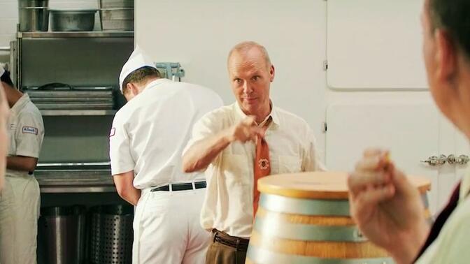 勉强及格。布洛克的特色就是“抢”,看到别人女朋友好,抢过来;中意麦当劳的店名,抢过来(相对来说那套速成烹饪法倒没什么)。而这个人实际是资质平平的(从不区别推销对象、一成不变的推销说辞能看出来),他靠热情、认真、决心和旁人的帮助成事,以上素质符合大部分人的情况,代入感还不错。导演在呈现这个故事时态度一板一眼,花二十分钟讲解老麦当劳工作流程,偶尔穿插点俯视的特殊视角,有点卡通化的倾向,讲的故事本身也属于“大亨秘闻”这种群众喜闻乐见的题材(而且对男主发迹过程、合伙人翻脸这些都讲的挺详细的)。其实这片子看着挺简单、挺流水账,但剧本和导演不加什么道德评判,一种低调的匠人精神,配上基顿朴实的演技,其实还挺抓人的 |