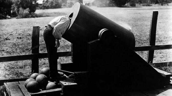 巴斯特·基顿代表作,一部汇集动作,冒险,爱情,战争多类型于一身的经典喜剧。"冷面笑匠"自编自导自演,仅用8周时间即兴拍摄完成,高难特技均亲自上阵。剧作上是工整的古典叙事模式,前后对称的火车追逐戏令人大呼过瘾,动作与镜头编排精妙无痕,笑料诙谐自然。至爱"荡火车"与结尾接吻敬礼一幕。(9.0/10) |