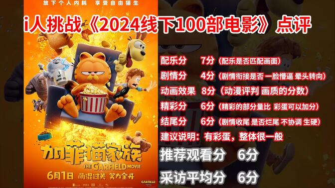 借《加菲猫》系列的人物拍了一部俗套的好莱坞冒险动画电影,对于抱着来感受原始动画魅力的初衷的粉丝来说应该会非常失望。两星。 |