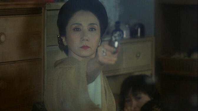 男性枪击的情节远不如姐妹俩厮打的场面有趣,权力的置换和运作只需要一个优雅的摘花动作,达成对前者的戏谑。岩下志麻多么适合演酒德麻衣 |