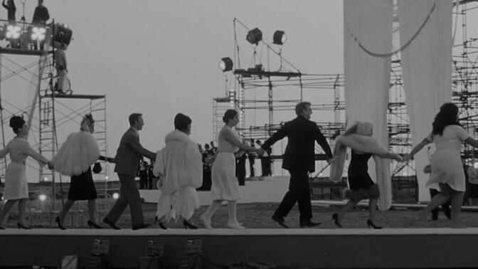 混乱的杰作。在所有自传式的有关“创作危机”的电影里,《八部半》都是一个难以超越的顶峰,因为它有魄力、也有能力,去触及电影造梦的本质,展现缠绕的思绪,并且直面梦的无逻辑。去拆解它是费力不讨好的,费里尼举重若轻地把所有要表达的东西一股脑地塞进电影里,却丝毫不显出臃肿,庞杂又如幽灵般的人物就与现实水乳交融。借用了不少戏剧的手法,但摄影机始终确认自身强有力的存在。顺带借角色之口狠狠挖苦了自己,让尖酸的评论家们无话可说。 |