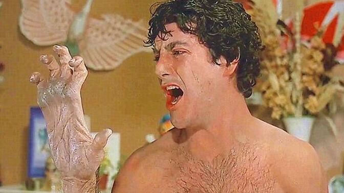 白天善良的绅士,夜晚变为凶残的猛兽。其实可以再深入探究,变成心理悬疑,思辨是精神分裂还是迫害妄想。电影给落到实处,就是真被咬变身了。月圆之夜的设定还没出来,变身镜头仅仅通过是通过叠化来表现。 |