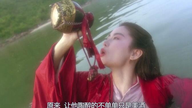 林青霞身着一袭红衣在水中饮酒那一幕美得不可方物,摄人心魄!影片在演技,服装,配乐等方面也非常优秀,可以说是武侠电影的经典! |