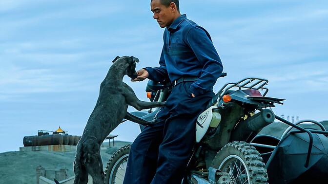 大西北,无垠的黄沙,废弃的蹦极台,荒凉的动物园,因人口流失而成群涌入的流浪狗……随着2008年到来,这个被遗弃的小镇,要重新跟上文明的进程。这是个末世与盛世共存的时空,也是硕大而无形的牢笼。而彭于晏饰演的假释人员二郎,则像是从过去穿越到当下,用他的沉默和无差别心的仗义,给这个冷峻的世界,涂上一点坚硬的暖色。