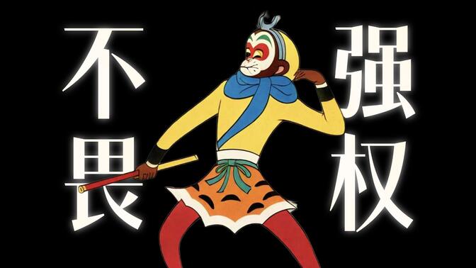 影片最后停留在齐天大圣砸毁凌霄殿、回到花果山的结局上,和原作中他被如来佛祖压在五指山下的结局不同,自然多了一份荣光。而这份荣光也属于这个时代的中国美术片——1961年,在《大闹天宫》诞生的年代,迪士尼拍出了他们的第十七部动画动画长片《101忠狗》,日本东映则拍出了由日本民间故事改编的《安寿与厨子王丸》。虽然在技术上能明显看出与其他两国的差距,但借助中国民间传统艺术的力量(如《大闹天宫》中的戏曲、《九色鹿》的敦煌壁画、《小蝌蚪找妈妈》的水墨画等),中国美术片却有着自成一派的风格。时至今日,上美的荣光早已消逝,但这个穿着虎皮裙的齐天大圣形象,却如影片结尾一样,站在名为经典的顶峰上屹立不倒。 |