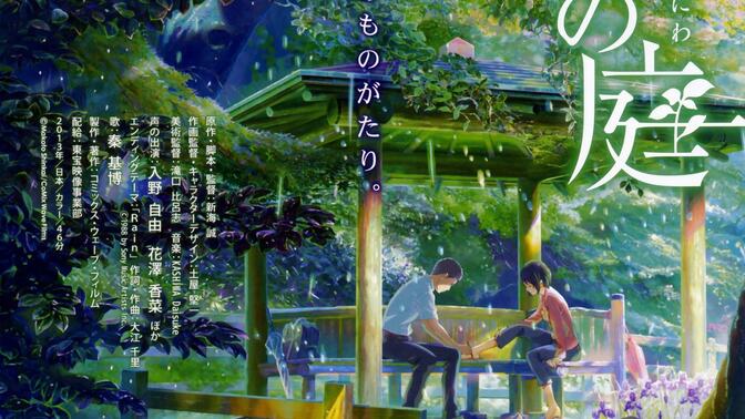题目其实是个民俗学的引子。所谓「言葉」,既是「鳴る神の 少し響(とよ)みて」,也是雨声,总结起来大抵类似于各国神话中常见的神/精灵之声。至于「庭」,在神话中也多有人界与异界交界之地的意味。新海诚只要对这两点在形式上给予足够支撑,忘忧和返世两重主题自然而然会形成,而他确实也做到了。 |