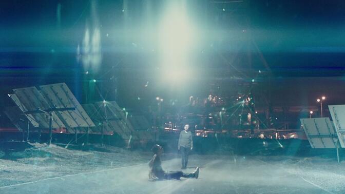 年轻人主角,家庭只有弟弟和生病的奶奶,和朋友,参加聚会到夜晚.喜欢的女生和别的男生一起,游泳沉底了,估计是被外星人改造了?后面展现对人有修复能力?和类似念力,停止下坠,抬起汽车.女主有辐射.逃跑的路程.背后有部门追踪.结尾那个光伏塔,新疆有一个,在电影马修`麦康纳的撒哈拉也有. |