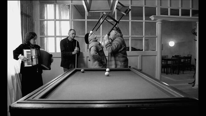 拥有个人风格和特质对于一个导演来说极为重要。无关乎风格沉闷与否,那只是个人审美差异问题。关键点在于:拥有风格且无法被复制,这比什么都重要。贝拉塔尔的每一个长镜头都有惊喜,单独拿出来看似乎都是完整的一场小短剧。维格的音乐是绝配。在酒馆的拉手风琴和老头跳舞的镜头实在太好了,让人感动! |