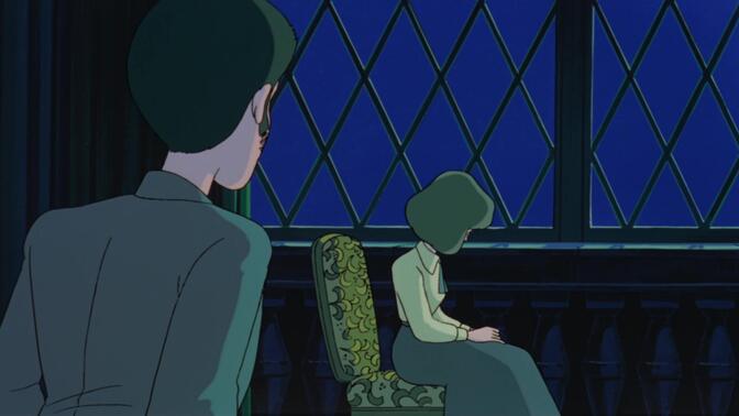 宫崎骏最早的一部作品居然还挺有英伦的感觉,欧洲建筑加上日本老歌,再配上一个童话般的爱情故事,有一种特别纯粹的感动,后面打戏的场景设定在一个摩登时代般的钟表齿轮里面,这是很有年代特点的地方。 |