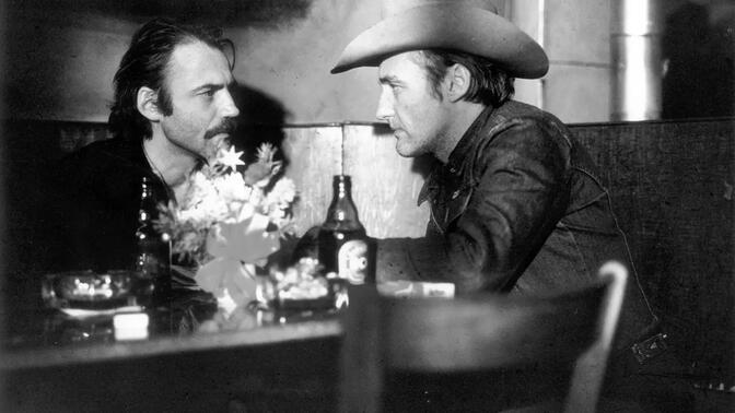 啊这部是文德斯的迷影片了吧,两个男人因为迷恋电影史前史而惺惺相惜,雷、富勒、厄斯塔什、丹尼尔施密德四个导演客串,当然丹尼斯霍珀本人也是导演了 |