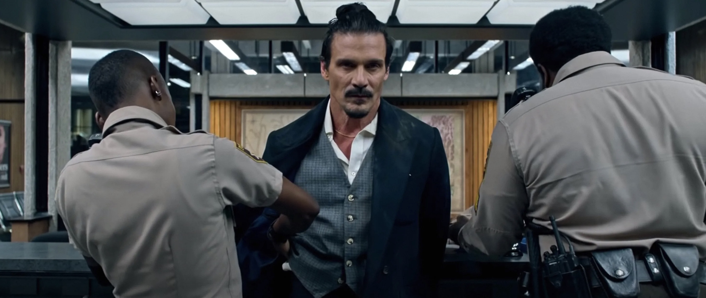 弗兰克·格里罗和杰拉德·巴特勒都是近来混迹于动作片的熟脸,两人同时出现在《警察局》中,影片的风格无需多言,肯定就是一通打打杀杀。