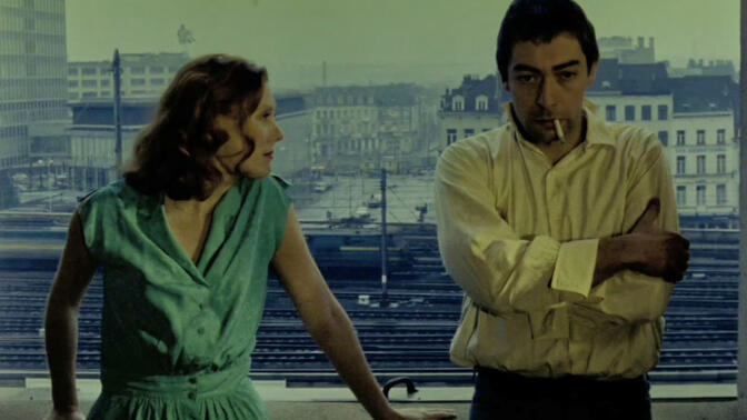 布鲁塞尔一夜。极简主义地只展现爱情关系的某个微瞬间(编舞般),在等待、出走、渴望的共同主题下展现个体的变奏,就此消解了陈词滥调,组成一部断裂、不完整、非线性的恋人絮语。固定的正面镜头以及门、窗与走廊的framing是标志性的,走道/楼梯的意象强化了空间/移动感。结尾精彩:外部声音侵入,一连八个Oui。 |