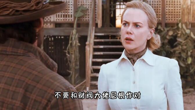 影评有说是史诗片,但这个定位太高了。妮可基德曼无懈可击的表演为影片增色不少。矫揉的英国贵妇、无助的牧场新寡妇、与土著混杂一起的牛仔、主流社会的叛逆者、战争期间军队服务者等等各个层面上的表演,各个方面都很好地塑造了“老板夫人”这个角色。开局设置的矛盾,在电影后面展开中挖掘深度还嫌不够,“外公”这个角色没有起到什么作用就是一例。